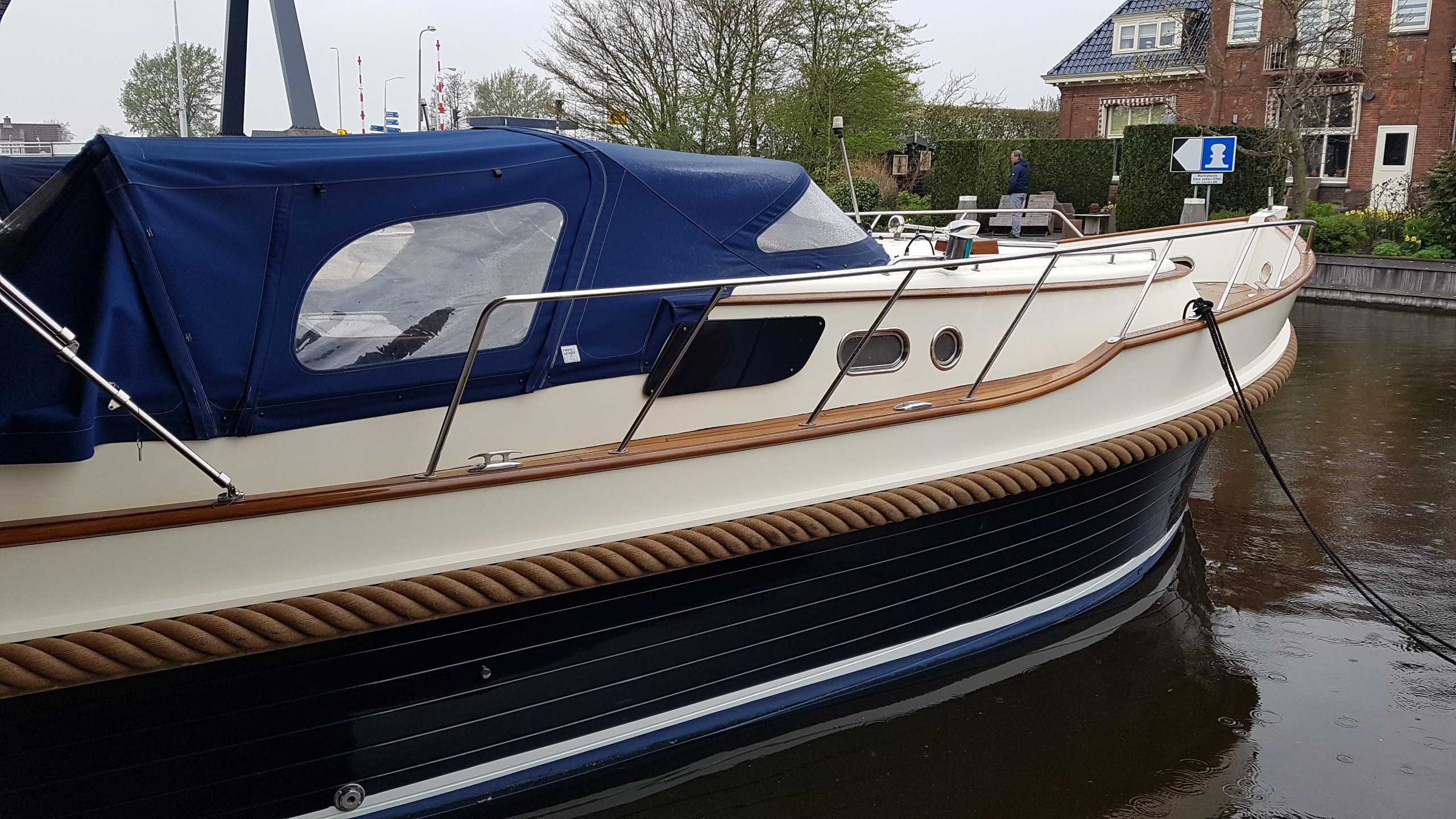 De Menken Maritiem New Port Bass Standaard bootkap bestaat uit een voorkap met een doorlopende achtertent. De buiskap voor wordt gemonteerd bij u op locatie. Hierbij maken wij gebruik van het bestaande frame, mocht uw frame in slechte conditie zijn, vink dan de optie 'nieuwe aluminium beugels aan'. De achterkap wordt voorzien van 3 spanbanden om de kap gemakkelijker op spanning te zetten. Het achterste gedeelte van de achterkap is geheel uitritsbaar. Voor het doek gebruiken wij een polyester acryl, van het merk Sunbrella. Hierbij heeft u de keuze uit 4 standaard kleuren: beige, donker blauw, hemp en zwart. De sluitingen in het doek zijn standaard van nikkel en geschikt voor veelvuldig gebruik. De sloepkap is voorzien van 3 ramen in de voorkap. In de achterkap zitten ook 3 ramen waarvan de middenraam achter oprolbaar is door middel van 2 ritsen. De open zomen, waarmee het doek op het frame wordt gemonteerd zijn van ritssluitingen voorzien, dit maakt de montage en demontage erg gemakkelijk. De sloepkap wordt afgewerkt met een biesband rondom. De belangrijkste naden zijn dubbel gestikt en voorzien van vliestape, waardoor een betere waterdichtheid ontstaat. Decennialang heeft de zeilmakerij voor boten en sloepen vrijwel stil gestaan. Enigszins gek, want het aantal sloepen en boten op het Nederlandse water is in veelvouden vermenigvuldigd. Met Perfect Boat Cover heeft elke boot- en sloepeigenaar de mogelijkheid om zijn of haar boot te voorzien van een stijlvolle en duurzame buiskap zonder gedoe. Hiermee doelen we op de onnodige wachttijden en torenhoge prijzen in de zomer die gehanteerd worden. Tegenwoordig gaat en moet alles sneller, beter en goedkoper. De snelheid van verandering in andere branches gaf Fred Schot het idee om zijn kennis en ervaring in te zetten om de zeilmakerij voor de watersport voor altijd te veranderen. Een vraag bleef branden, namelijk: 'Waarom moeilijk doen als het makkelijk kan?'. Al snel ontstond het idee om de perfect bootkoop te maken. Maar niet op de gebruikelijke manier, want de booteigenaren willen niet wekenlang wachten en hoge tarieven betalen in het zomerseizoen. Vanuit deze gedachte ontstond de basis voor Perfect Boat Cover. Dé leverancier van buiskappen voor bekende merken, zoals: Menken Maritiem. Een leverancier die buiskappen voor tientallen modellen van verschillende merken in grotere aantallen assembleert, zodat elke sloepeigenaar snel en voordelig kan genieten van een bootkap. Echt voordelig, want in de zomermaanden betaalt u bij ons ook het prijsgunstigere wintertarief. Ondanks dat onze buiskappen in grotere getallen worden geassembleerd, spreken wij van een uniek product. Al onze bootkappen worden namelijk gemaakt van de best mogelijke materialen. Met het beste bedoelen wij ook het beste. De duurzaamheid van onze buiskappen wordt mogelijk gemaakt door het gebruik van aluminium beugels, bevestigingsmaterialen en high-tech doeken. Doordat wij volledig voor dit kwaliteitsniveau kiezen en al onze bootkappen assembleren met al de denkbare functionaliteiten kunnen we deze aantrekkelijk aanbieden. Menken Maritiem New Port Bass Standaard bootkap